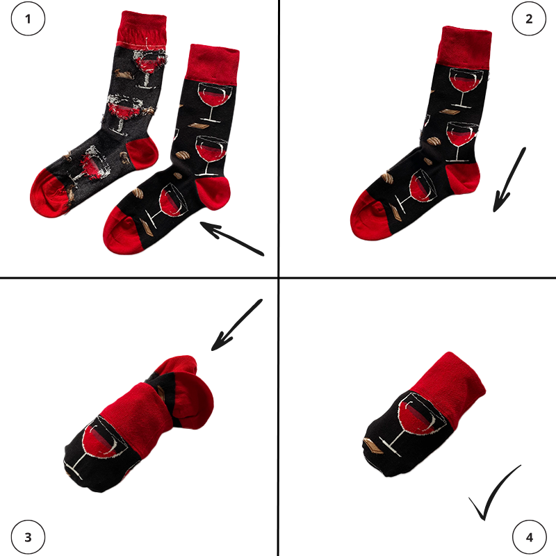2. Свиткајте го горниот дел од едниот чорап навнатре, преку другиот.
